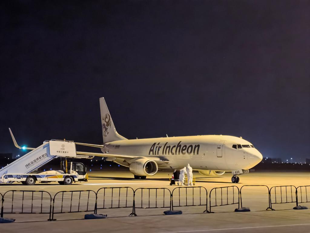 4月15日,“大阪-仁川-合肥”联程货运航班到达合肥新桥国际机场。(图片由受访对象提供)