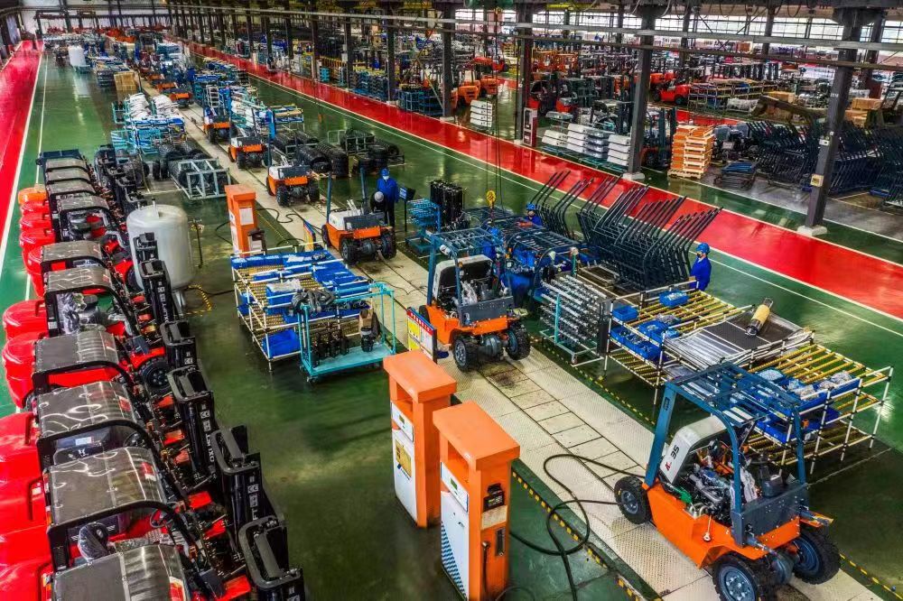 4月13日,工人在安徽叉车集团合力叉车智能化整车装配生产线上忙碌。(图片由受访对象提供)