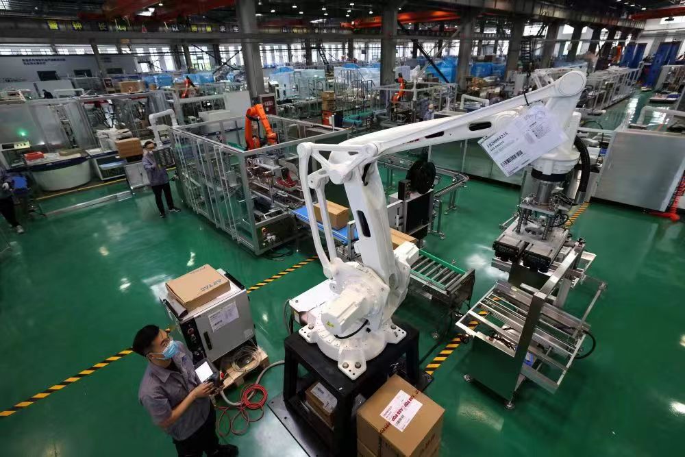 4月13日,合肥哈工龙延智能装备有限公司工人对智能机器人进行功能测试。(图片由受访对象提供)