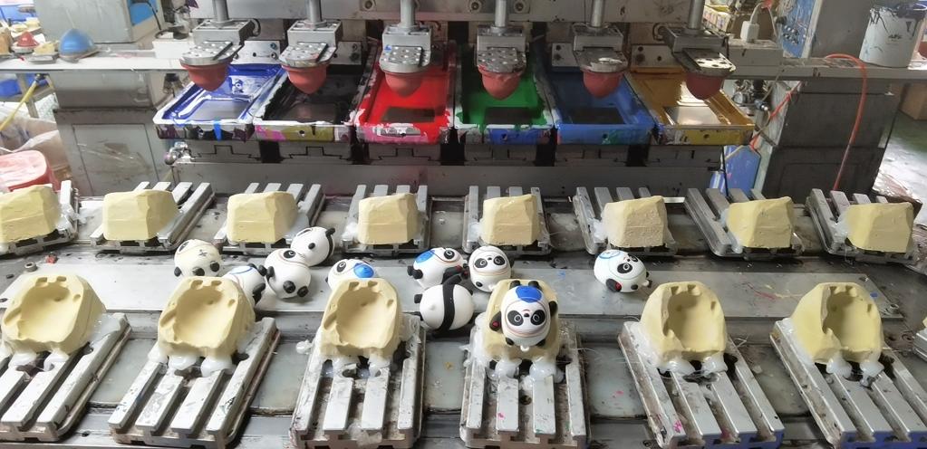 广东公安机关查获的假冒“冰墩墩”及生产模具。公安部供图