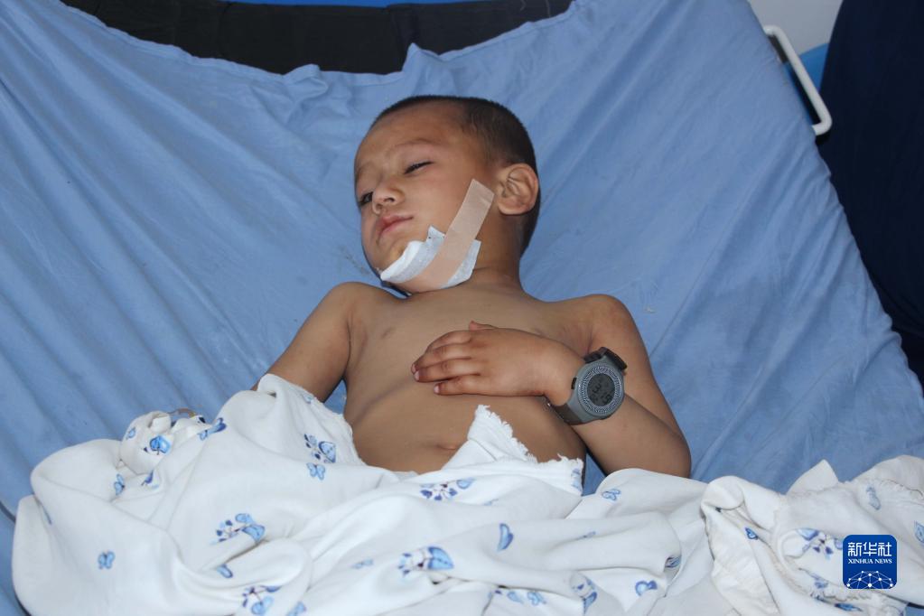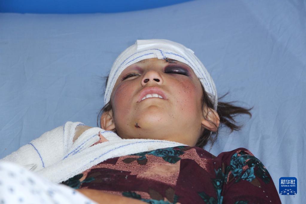 4月21日,在阿富汗昆都士市,一名在爆炸袭击事件中受伤的儿童在医院接受治疗。新华社发(艾马尔·卡克尔摄)
