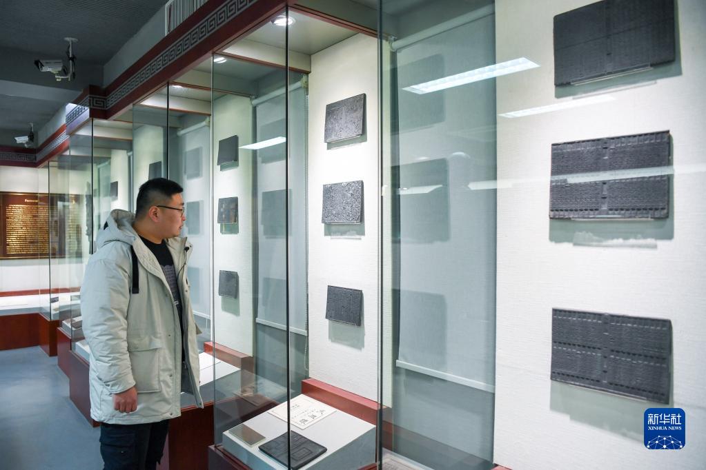 王康在金陵刻经处经版楼内参观经版(2月21日摄)。新华社记者 李博 摄