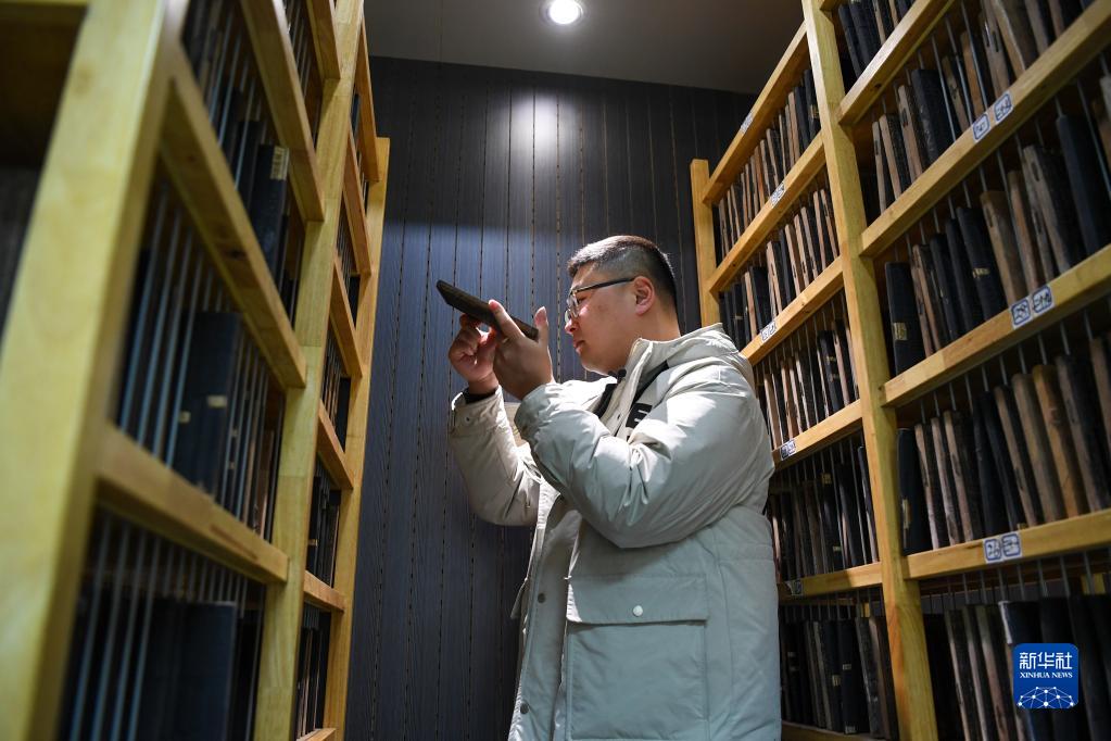 王康在金陵刻经处经版楼内整理、查看经版(2月21日摄)。新华社记者 李博 摄