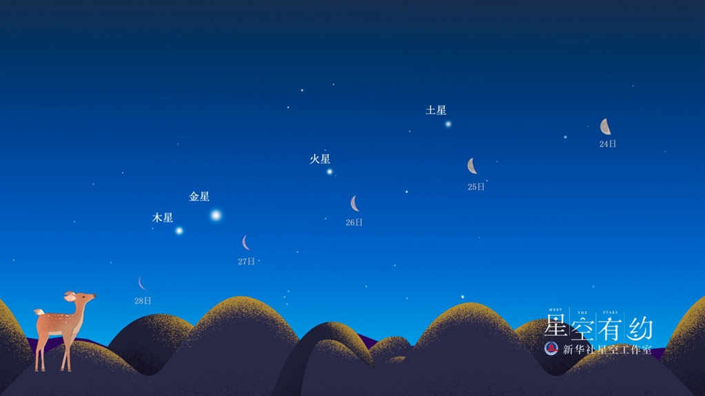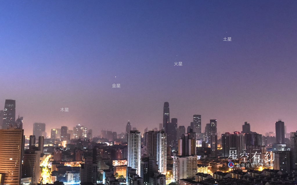 修立鹏提醒说,感兴趣的公众要想目睹“四星连珠伴月”,一定要早起,最佳时间在日出前30分钟至60分钟,观测时要选择东南方空旷、视野开阔、无光污染的场地,如郊区、高山,凭借肉眼即可欣赏。其间,早起的朋友还可以观测到淡淡的、呈拱桥形状的银河。难得的是,一些地方(如北京)的公众还会看到中国空间站与“四星连珠伴月”短暂“邂逅”的罕见画面。而如果是在城市里观测,受晨光和灯光等影响,可能只会看到金星和木星上演的“双星伴月”,但也很精彩。