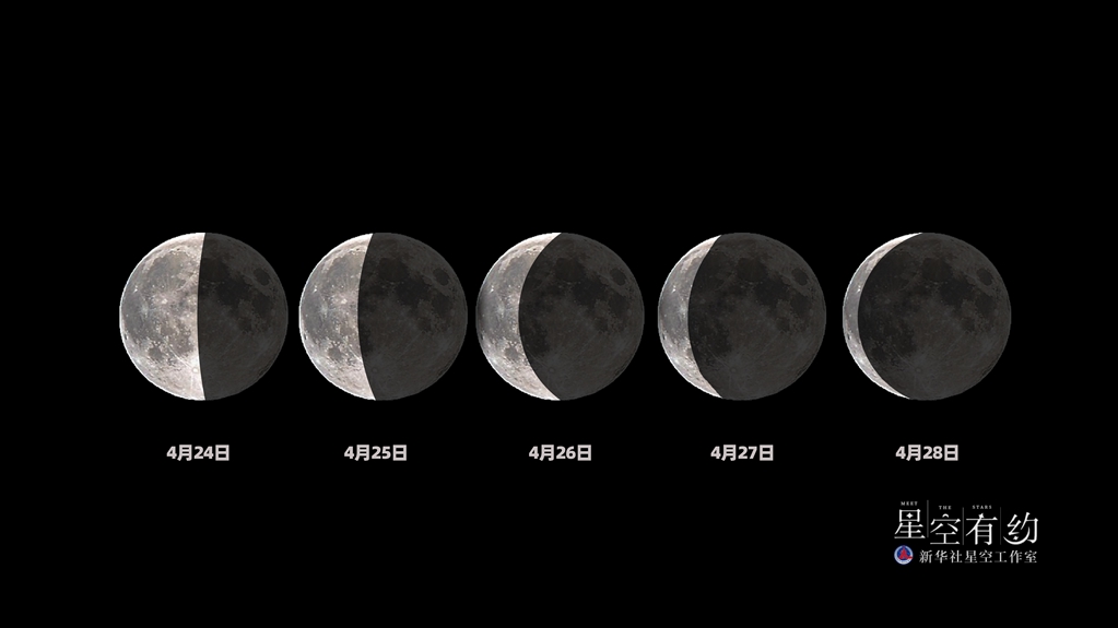 这是4月24日至28日的月相变化。(制作:胡彦竹)