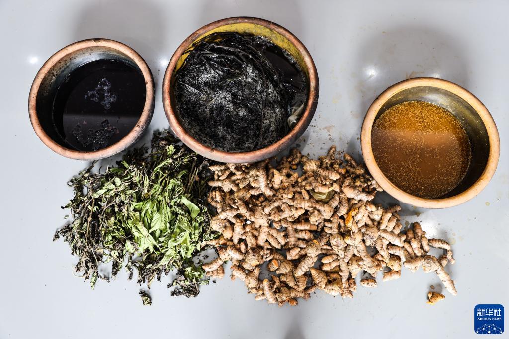 博鳌亚洲论坛主题公园展出的黎锦植物染料(4月20日摄)。