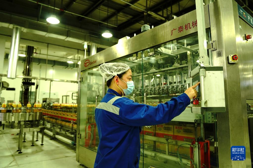 4月22日,在上海嘉里食品工业有限公司的生产车间,操作人员调整设备工艺参数。