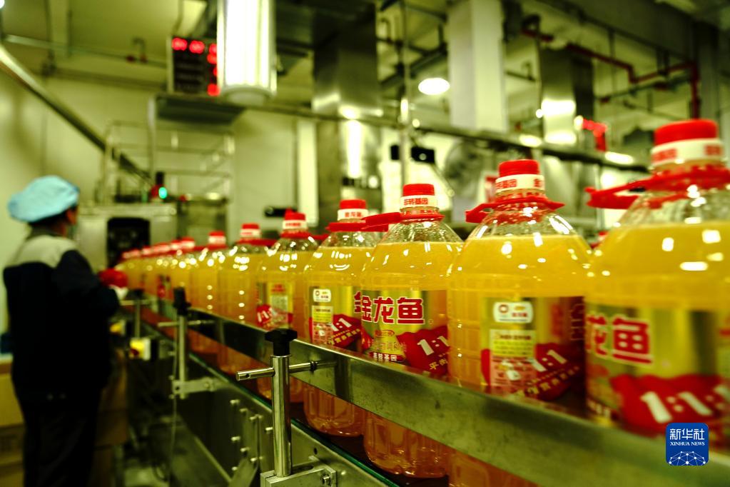4月22日,在上海嘉里食品工业有限公司的生产车间,操作人员在小包装食用油生产线前忙碌。