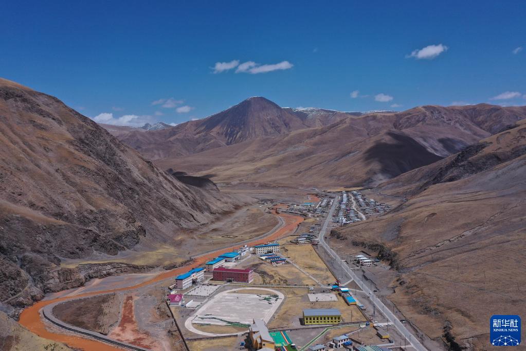 这是4月22日在青海省玉树藏族自治州曲麻莱县拍摄的巴干乡寄宿制小学(无人机照片)。