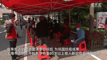 在率先达到社会面清零目标后,为巩固抗疫成果,上海市崇明区开始有序恢复60岁以上老人新冠疫苗接种工作。多个乡镇组织为防范区内60岁以上老年人提供分批、分时段的新冠疫苗接种服务。