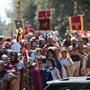 当日,人们穿戴古罗马时期服饰,围绕罗马大竞技场、威尼斯广场和斗兽场等景点进行建城2775年庆祝游行。相传罗马建城日为公元前753年4月21日。