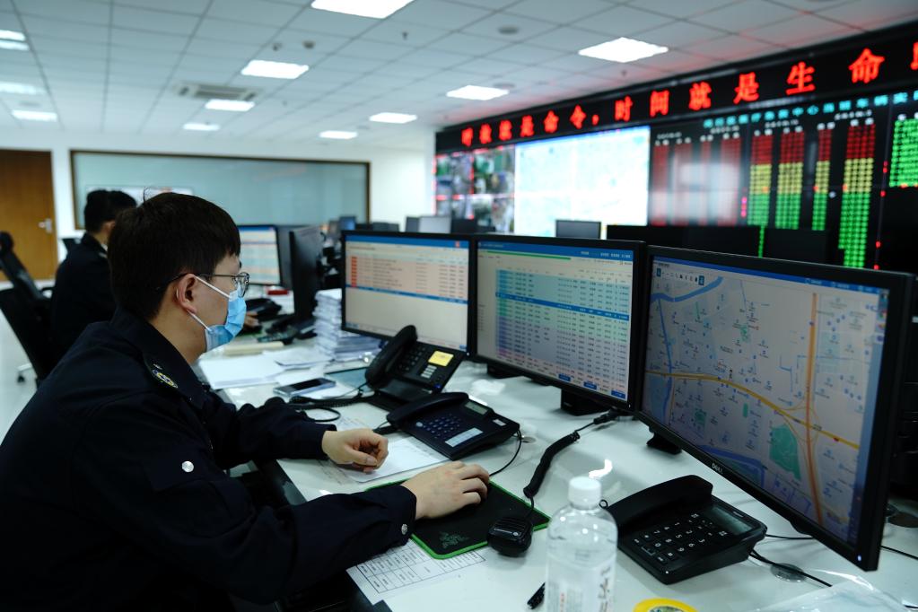 4月23日,上海市闵行区医疗急救中心调度员在紧张工作。新华社记者 张建松 摄