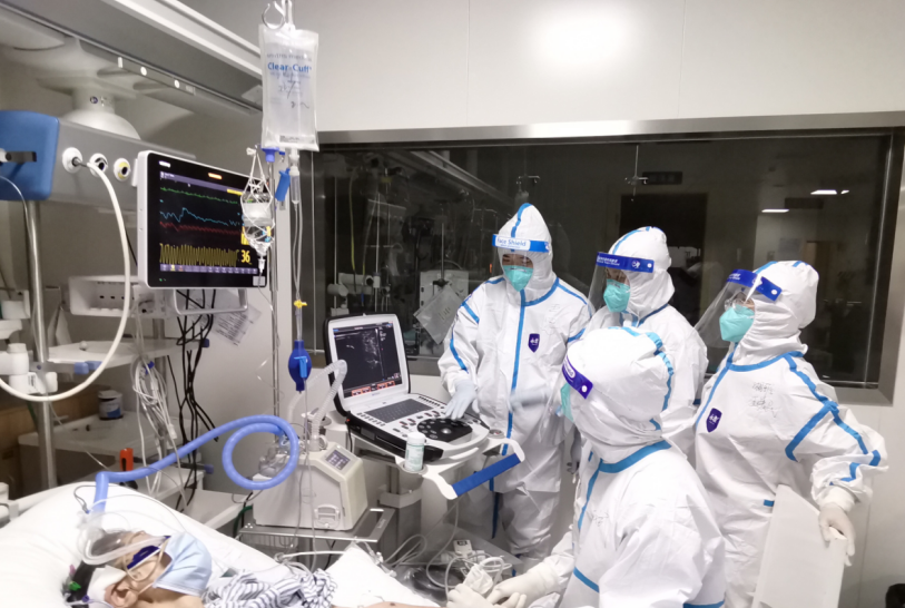 对于重症老年患者而言,医疗队需要随时关注他们的病情变化。92岁的重症患者王奶奶患有高血压、脑梗等严重基础疾病,全身血管塌陷,生命危在旦夕。在张丽娜的指导下,医疗队队员黄斌成功为王奶奶开展超声引导下动静脉穿刺置管术,为这名高龄患者建立了“生命通道”。