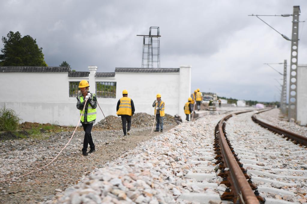 4月13日,工人在湖南省浏阳市浩吉铁路沿线施工。新华社记者薛宇舸摄