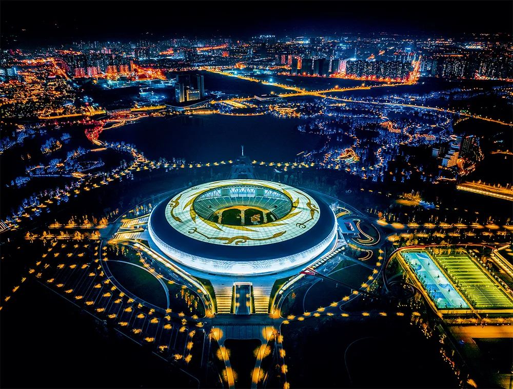 成都东安湖体育公园夜景(2021年11月17日摄) 蒋人可摄