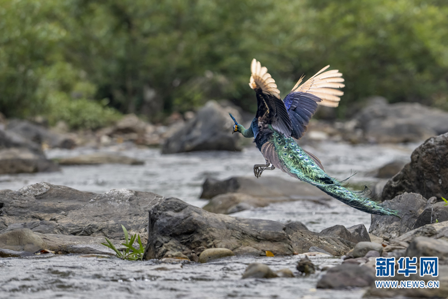 恐龙河自然保护区内的绿孔雀(资料图)。新华网发(邓雄 摄)