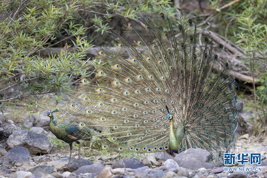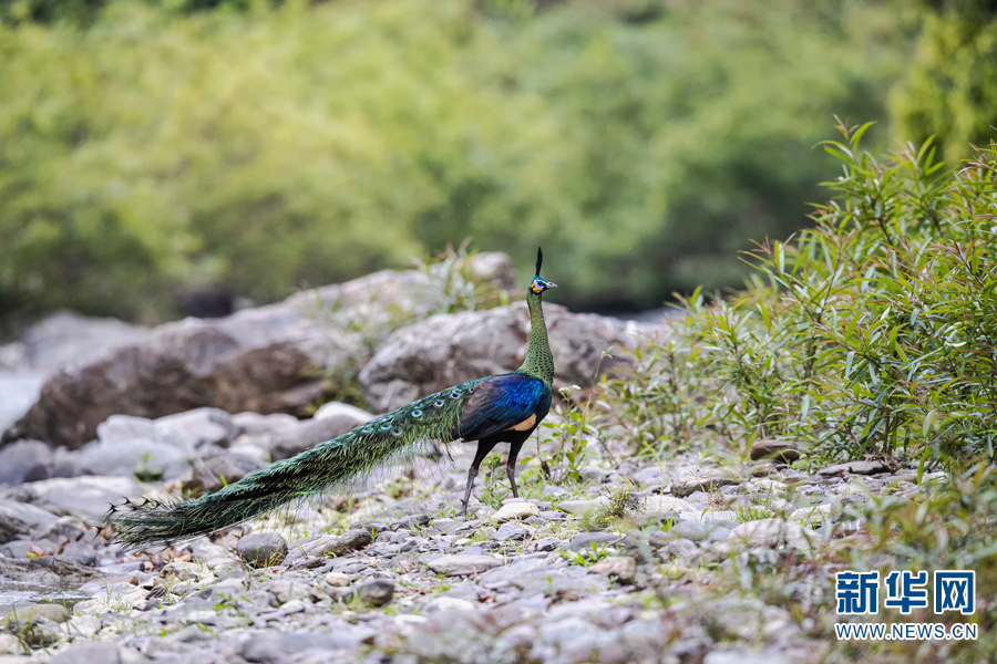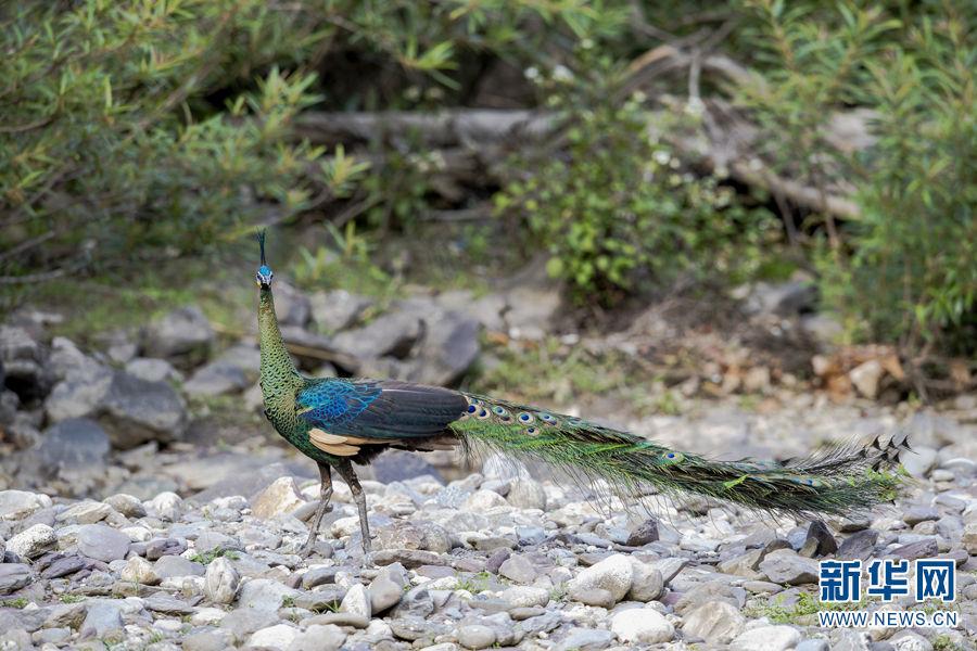 恐龙河自然保护区内的绿孔雀(资料图)。新华网发(颜谦 摄)