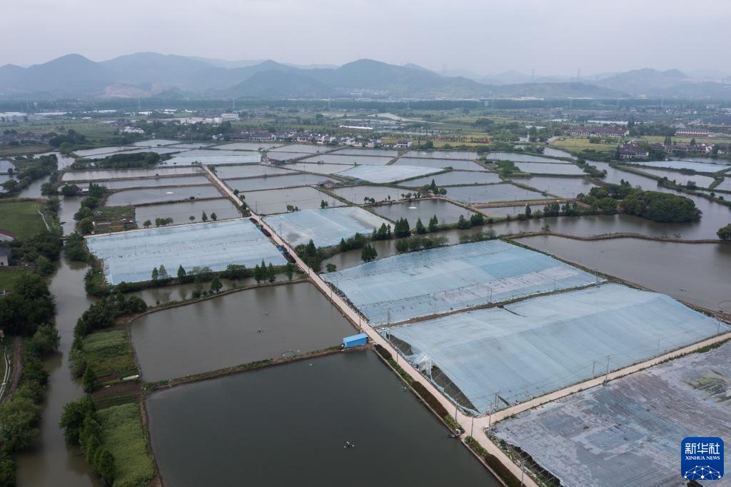 4月27日,空中俯瞰湖州市吴兴区东林镇保健村湖旺水产基地(无人机拍摄)。