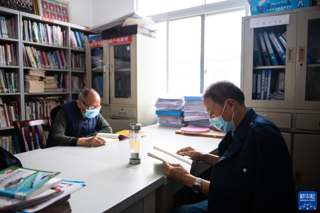 4月27日,在鼎城区谢家铺镇官桥坪村幸福屋阅览室,老人们阅读书籍。