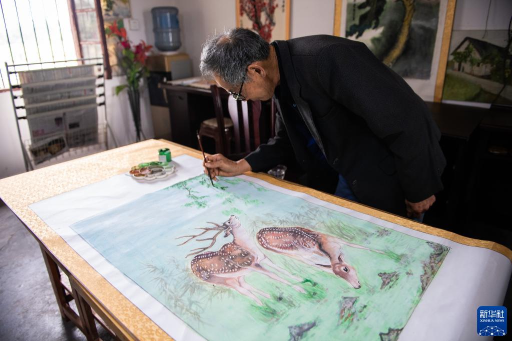 4月27日,在鼎城区谢家铺镇官桥坪村幸福屋,老人练习画画。