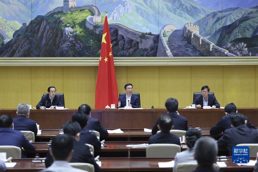 4月27日,中共中央政治局常委、国务院副总理韩正出席“三区三线”划定工作电视电话会议并讲话。新华社记者 丁海涛 摄