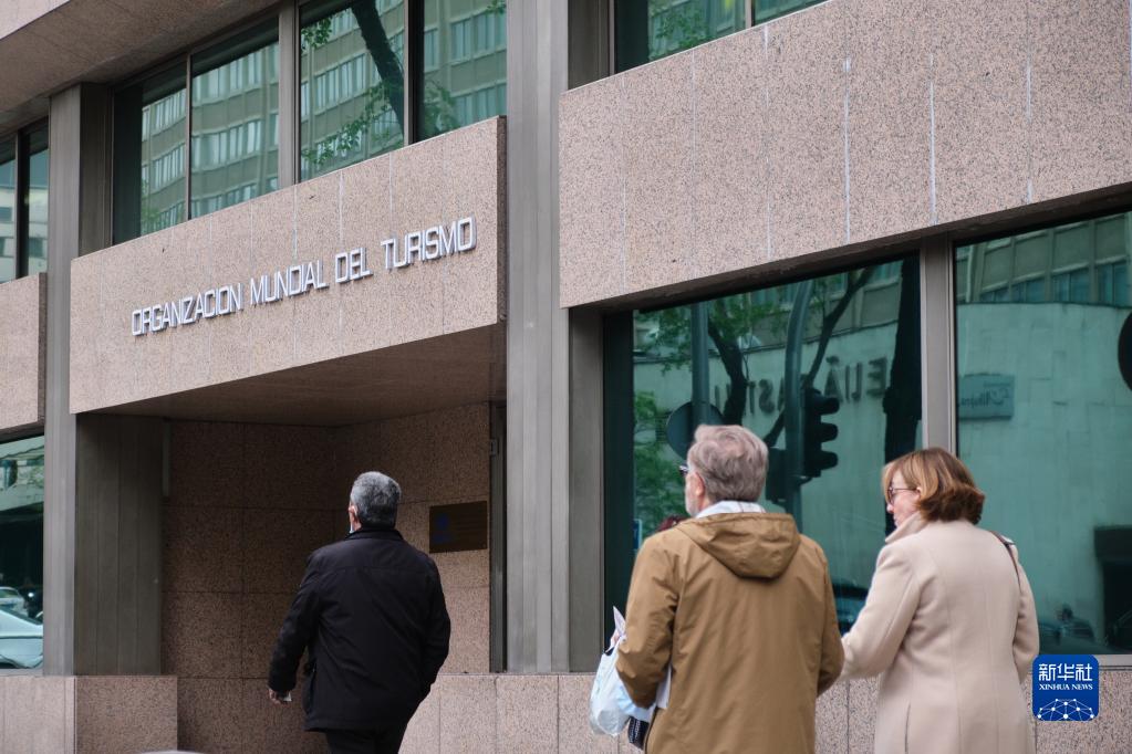 4月27日,人们经过位于西班牙马德里的世界旅游组织总部。新华社记者 孟鼎博 摄
