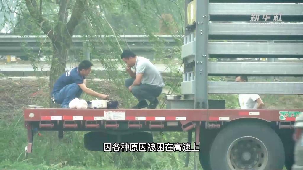 因各种原因被困在高速上 驾驶舱的货车司机们