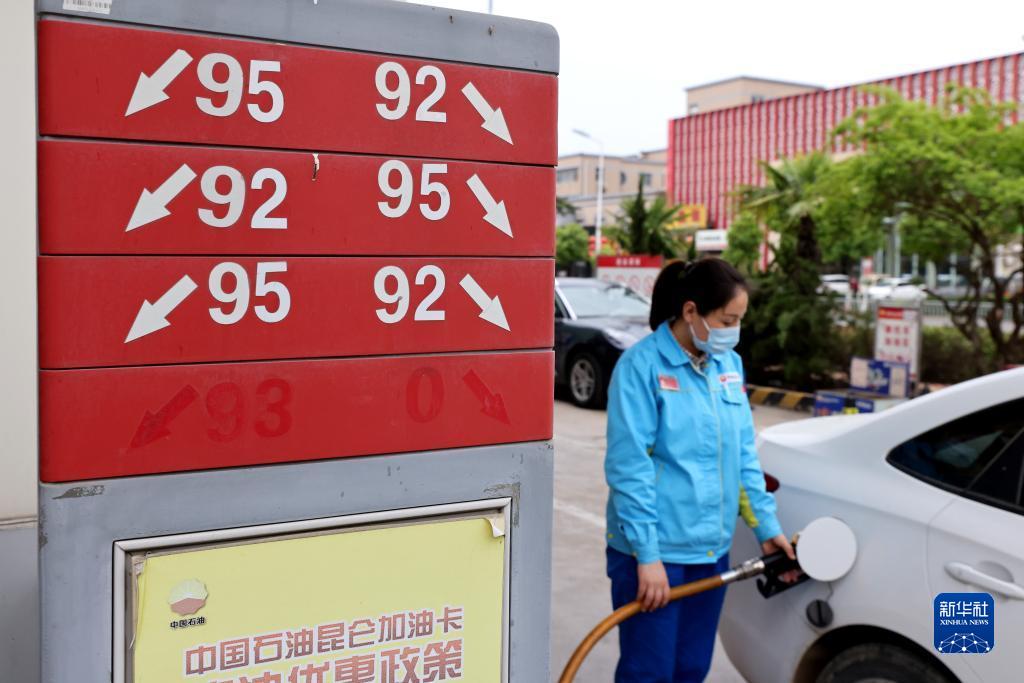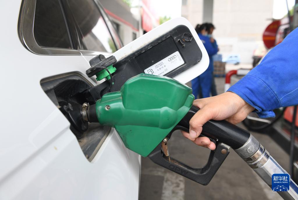 4月28日,河北省石家庄新乐市一家加油站的工作人员给车辆加油。新华社发(贾敏杰摄)