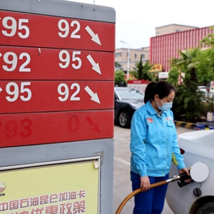 4月28日,在山东省枣庄市光明路街道一家加油站,工作人员给车辆加油。新华社发(孙中喆摄)
