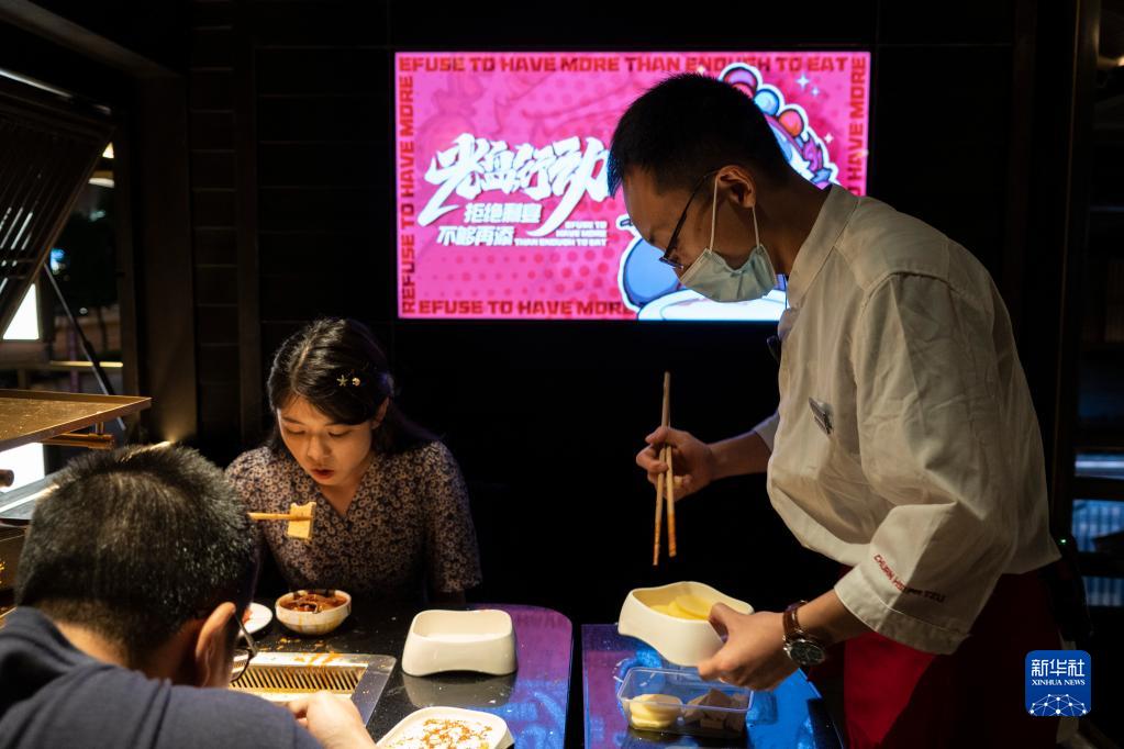 “你们店里有没有张贴相关标识?有没有什么具体措施?有没有提醒就餐客人不要浪费?”走进四川成都都江堰市杨柳河街的一家火锅店,都江堰市市场监管局综合行政执法大队执法二科副科长王丽铭正在随机检查反食品浪费相关措施是否落实到位。