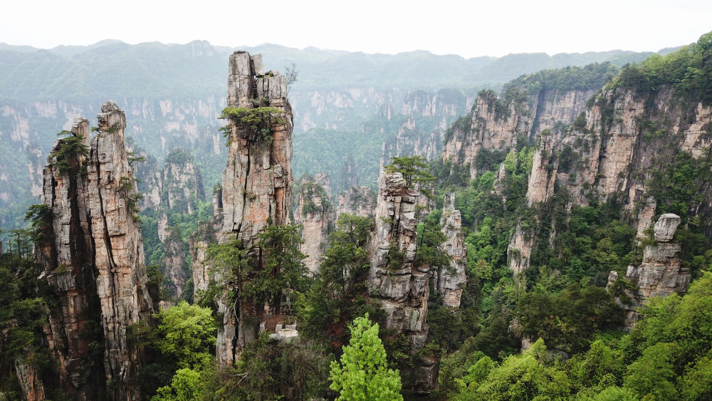 跟随新华社记者的无人机镜头,一起鸟瞰“峰林如画”的武陵源。