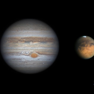 这是广东省天文爱好者周志伟拍摄的木星、火星特写(拼版)。(资料图,本人提供)