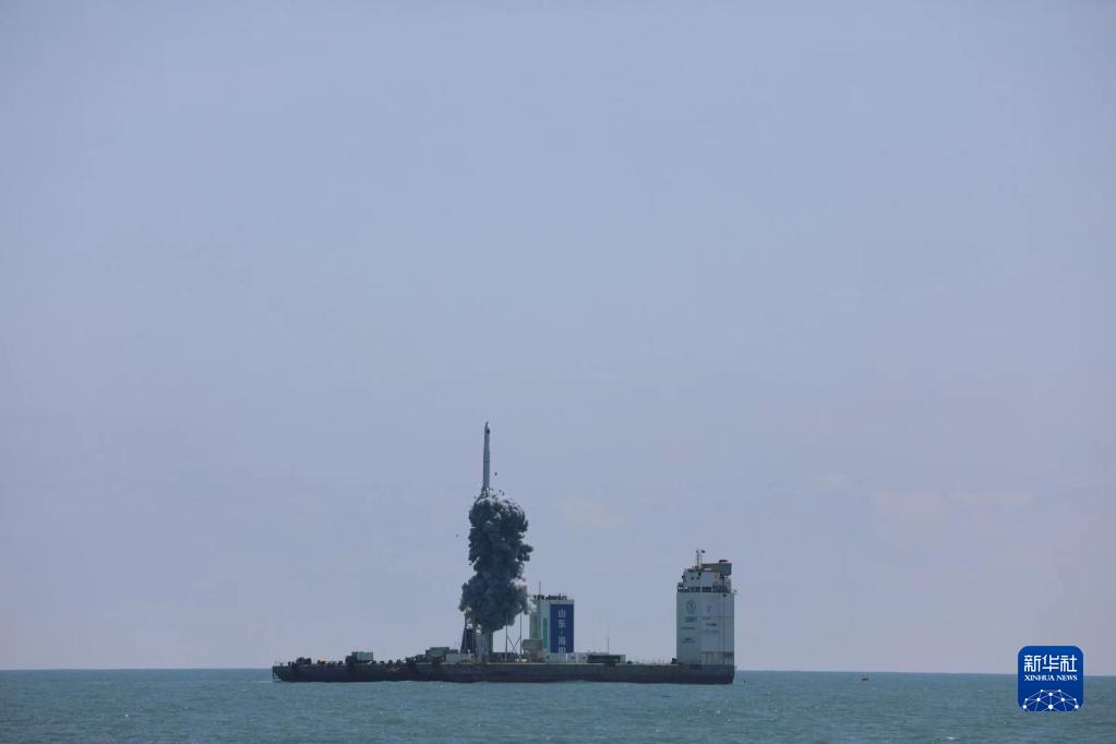 4月30日11时30分,我国在东海海域使用长征十一号海射遥三火箭发射吉林一号高分03D(04~07)/04A卫星,卫星顺利进入预定轨道,发射任务获得圆满成功。新华社发(于吉松 摄)