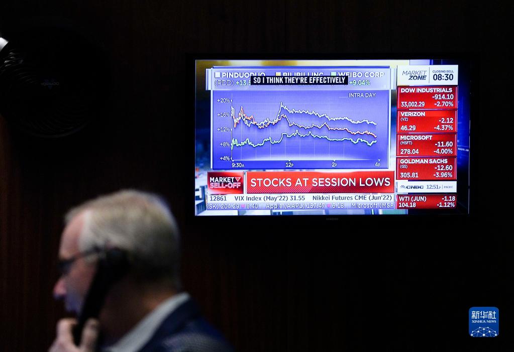 截至当天收盘,道琼斯工业平均指数比前一交易日下跌939.18点,收于32977.21点,跌幅为2.77%。标准普尔500种股票指数下跌155.57点,收于4131.93点,跌幅为3.63%。纳斯达克综合指数下跌536.89点,收于12334.64点,跌幅为4.17%。