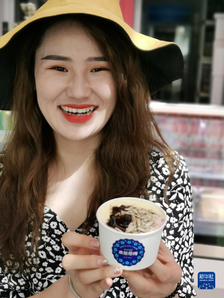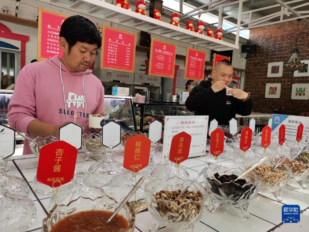 “慕名已久,终于尝到了,冰激凌很有特色,回去一定推荐朋友来吃。”广东游客刘俊杰抿了一口撒满果酱和果仁的冰激凌,满足地说。