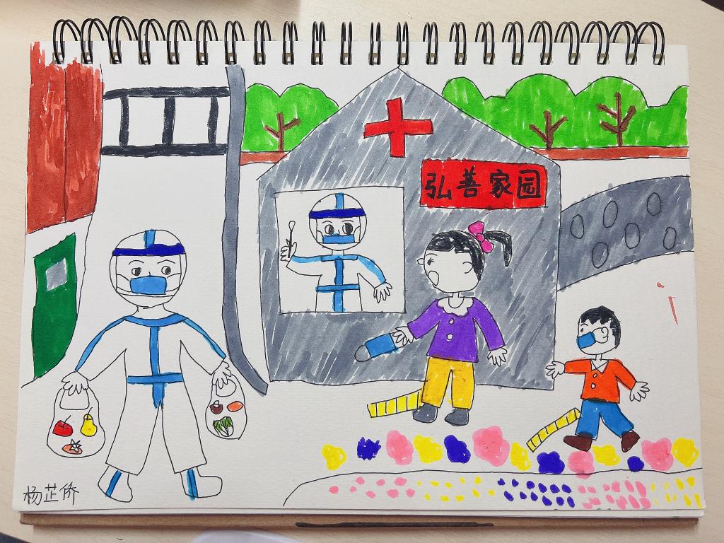 北京市东城区光明幼儿园朝阳分园的幼儿创作的绘画作品《战疫情》。(受访者供图)