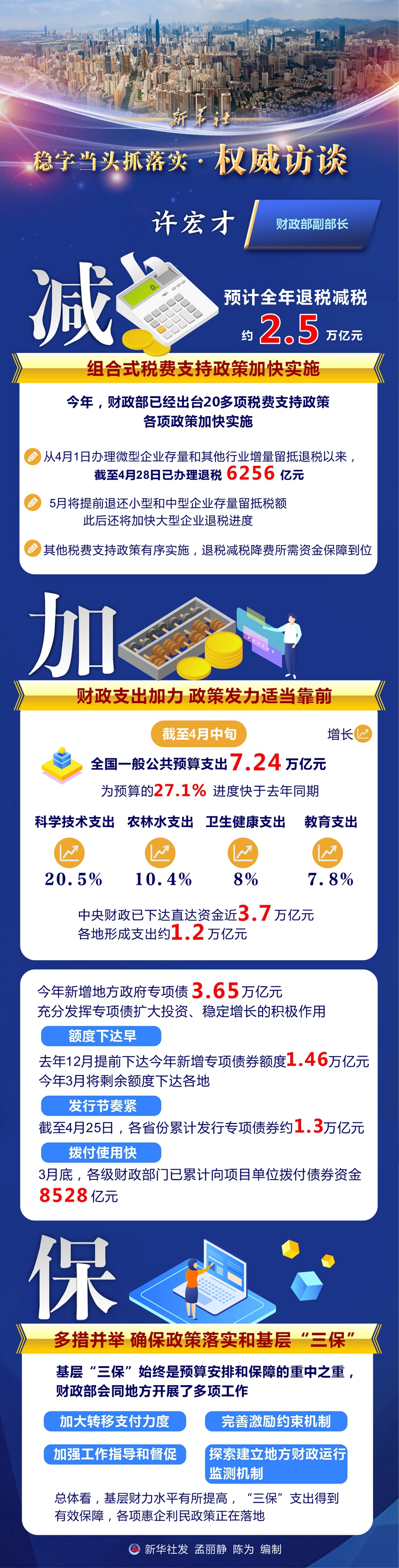 新华社北京5月2日电 题:加力纾困解难,着力稳住经济——财政部副部长许宏才详解积极的财政政策