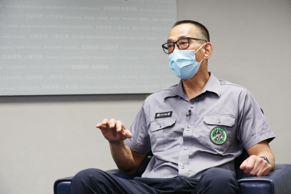 香港警员黄敬慈在接受新华社记者采访(4月6日摄)。新华社记者 吴晓初 摄