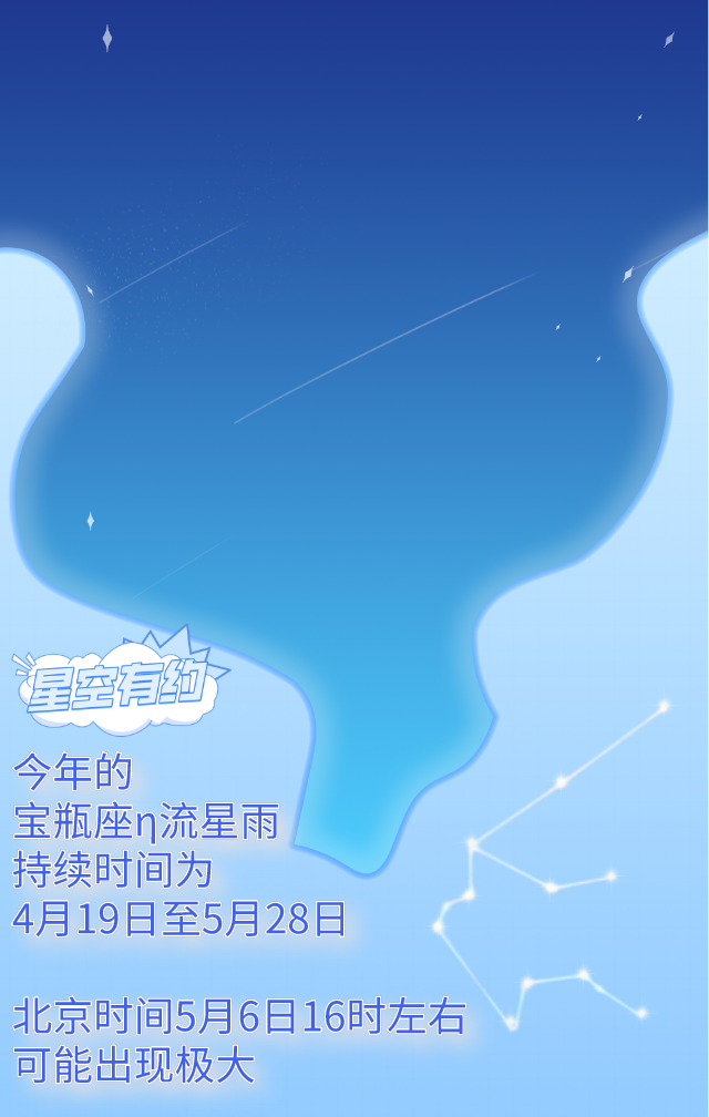 天文预报显示,今年的宝瓶座η流星雨极大可能出现在北京时间5月6日16时左右。