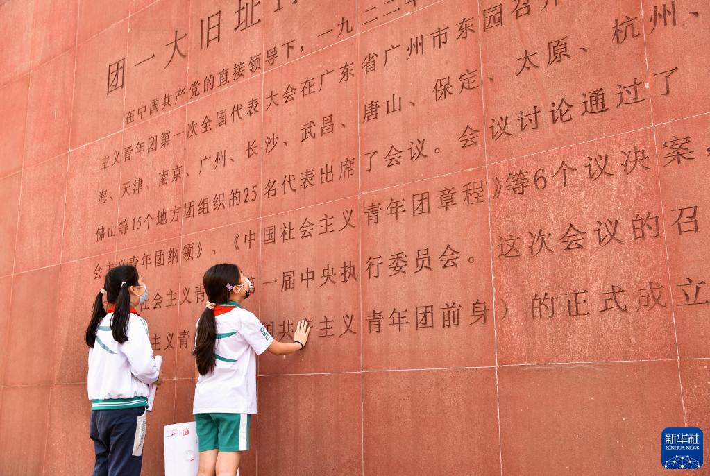 5月3日,广州东风东路小学的学生来到团一大广场参观。