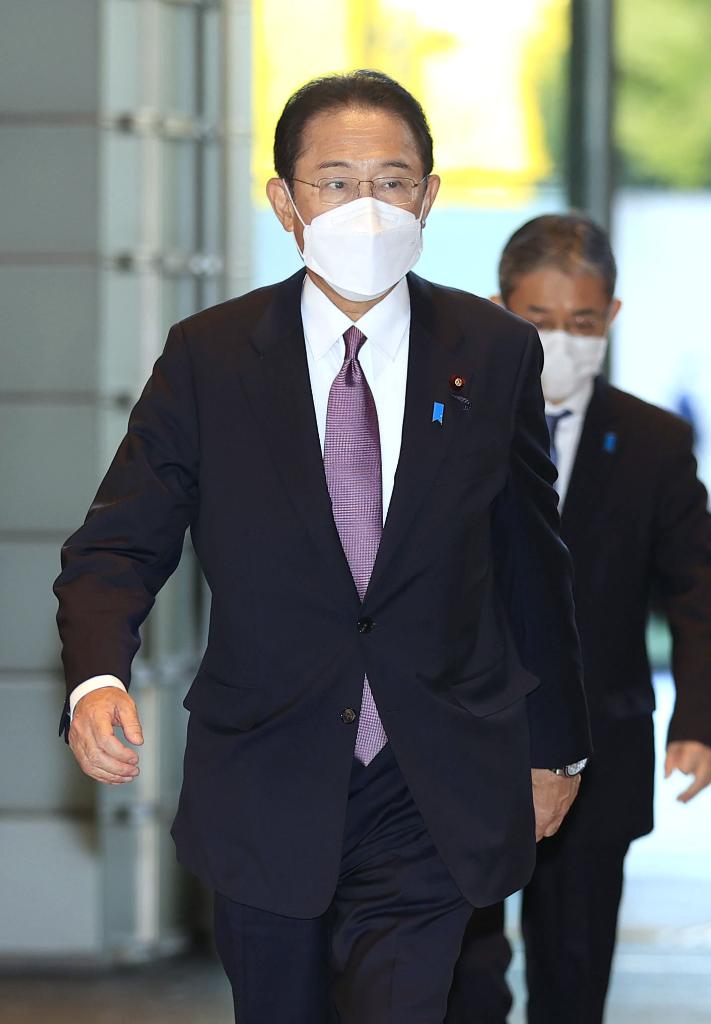 2021年11月10日,日本自民党总裁岸田文雄在国会众参两院举行的首相指名选举中,均获得超过半数的选票,当选日本第101任首相。这是岸田文雄当天进入位于日本东京的首相官邸。(新华社/共同社)