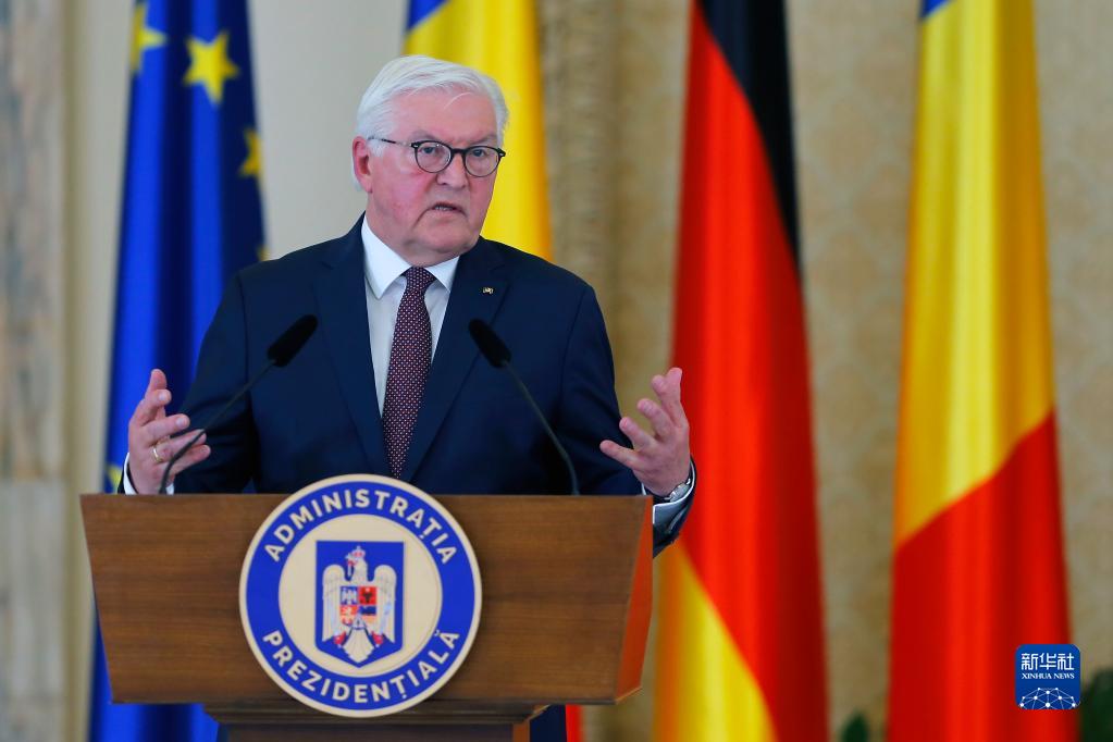 5月4日,在罗马尼亚首都布加勒斯特,德国总统施泰因迈尔出席新闻发布会。新华社发(克里斯泰尔摄)