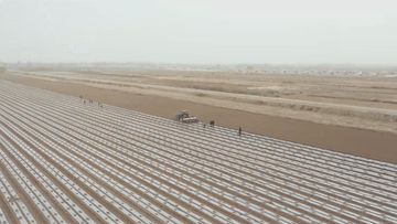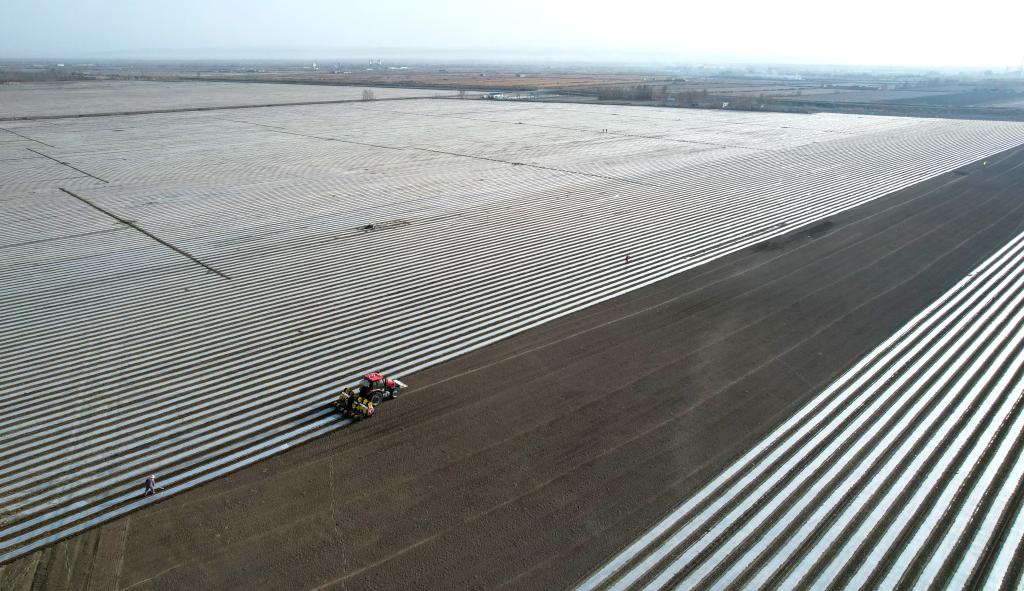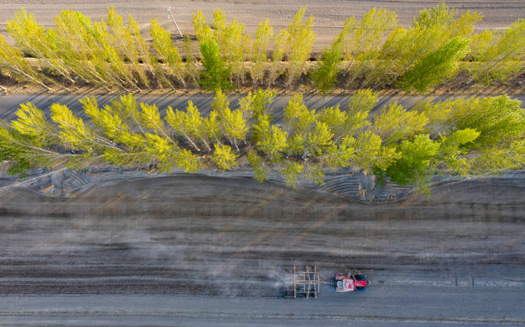 这是今年在新疆尉犁县拍摄的棉田春播场景(受访者供图)。