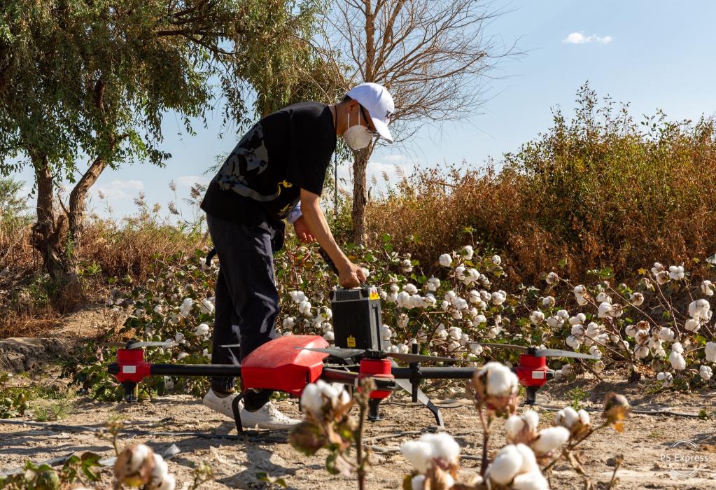 一名农业植保无人机飞手正在给无人机更换电池(2019年9月22日 新华社记者李志浩 摄)。