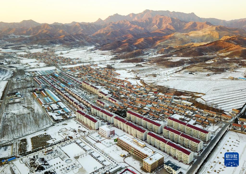 这是平泉市桲椤树镇桲椤树社区雪后的景色(2019年12月30日摄,无人机照片)。新华社记者 杨世尧 摄