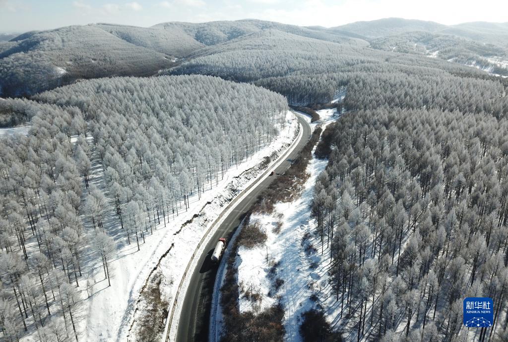 这是承德市围场满族蒙古族自治县御道口镇境内的森林雪景(2020年12月4日摄,无人机照片)。新华社发(王立群摄)