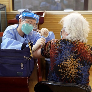 在上海,杨浦区长白社区卫生服务中心将疫苗接种服务搬进了养老机构。“谢谢他们能够到我们这里上门服务。”95岁老人严淑英说。