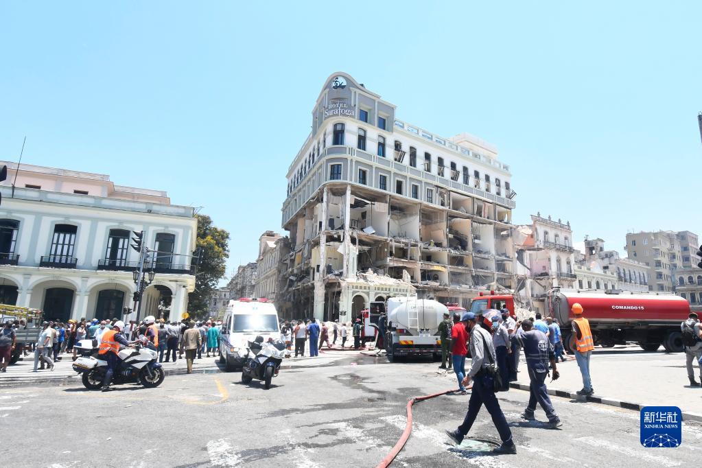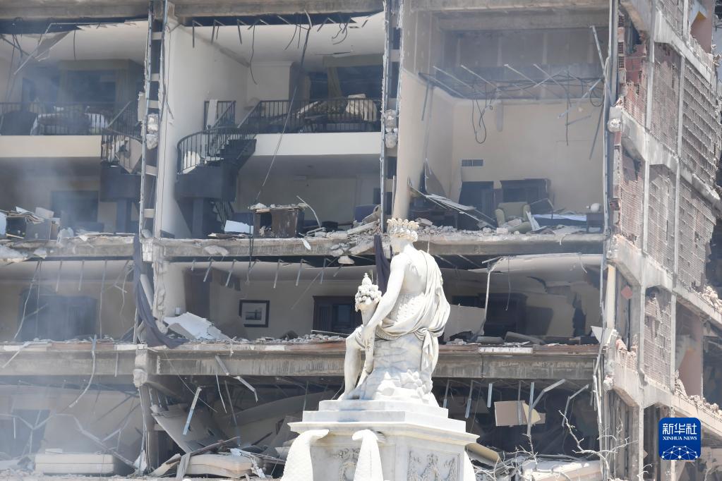 这是5月6日在古巴首都哈瓦那拍摄的发生爆炸事故的萨拉托加酒店。新华社发(华金·埃尔南德斯摄)