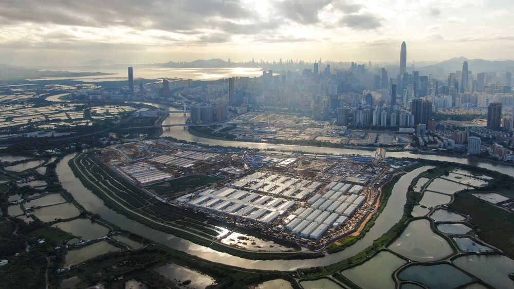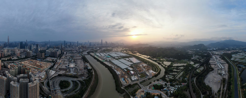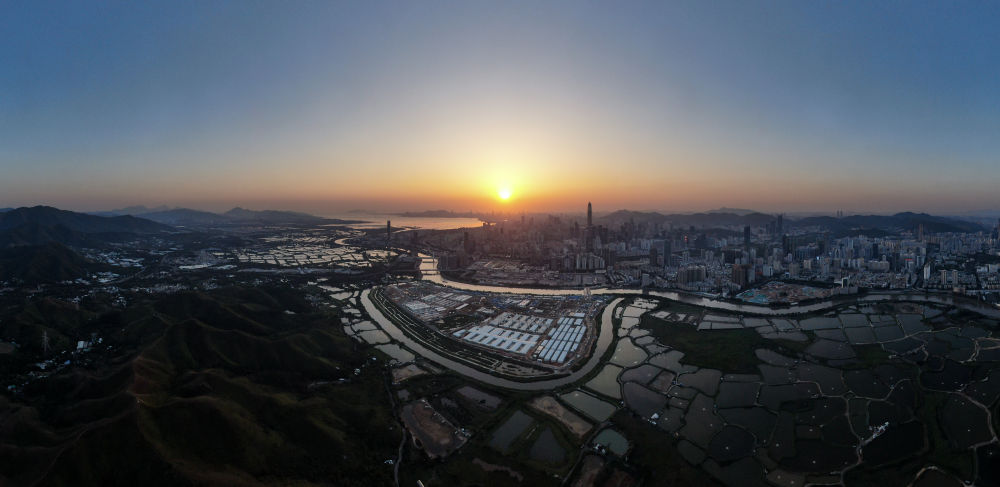 4月3日,夕阳下的落马洲河套地区,中央援港应急医院如一叶方舟。