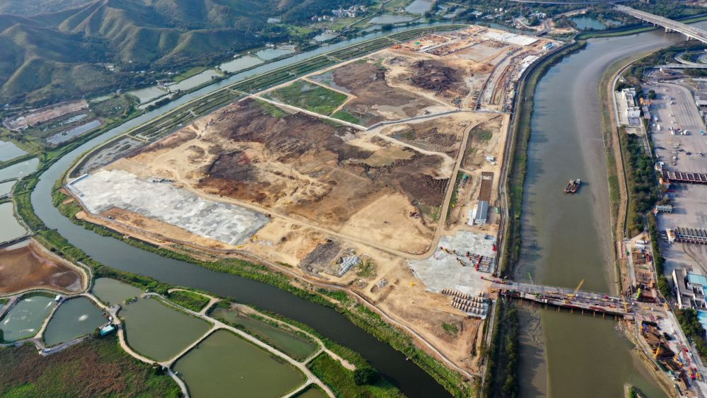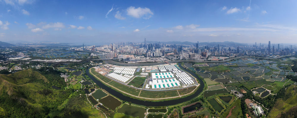 这是中央援港应急医院和落马洲方舱设施项目全景图(5月6日摄)。